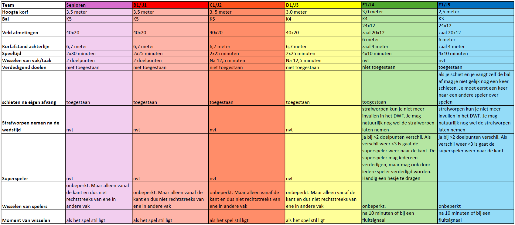 De KNKV heeft een aantal spelbepalingen verandert/aangepast. Ook werken we nu met andere benamingen. Daarnaast krijgen we regelmatig vragen over praktische zaken aangaande veld en korf. We hebben zo veel mogelijk in een overzichtelijk schema gezet.